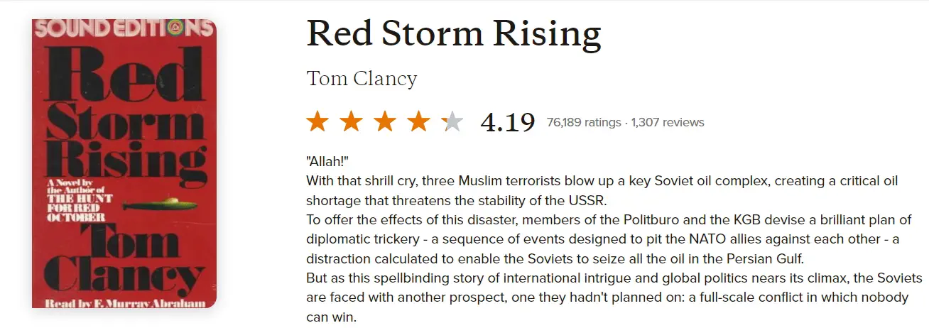 I started reading Red Storm Rising by Tom Clancy. Really cool so far.
